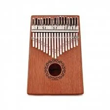 Compact mahogany 17 tine kalimba delivers warm, mellow tones